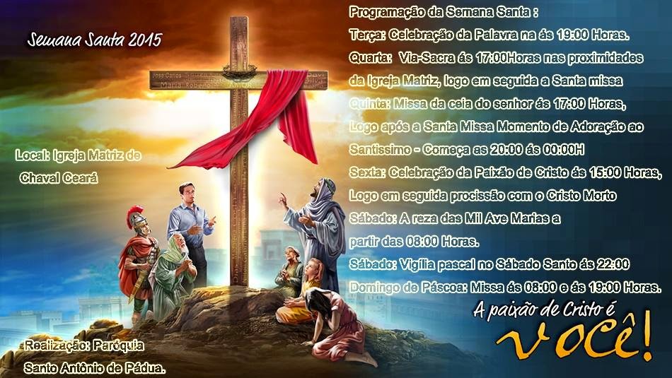 É com enorme alegria que a paróquia Santo Antônio de Pádua, Convida a toda a população Católica para juntos Participarmos deste grande momento de unidade, intensa espiritualidade, Reflexão, Jejum e Caridade. Venha participar e vivenciar todos os passos do Cristo que foi pregado na cruz mas venceu a morte e ressuscitou!