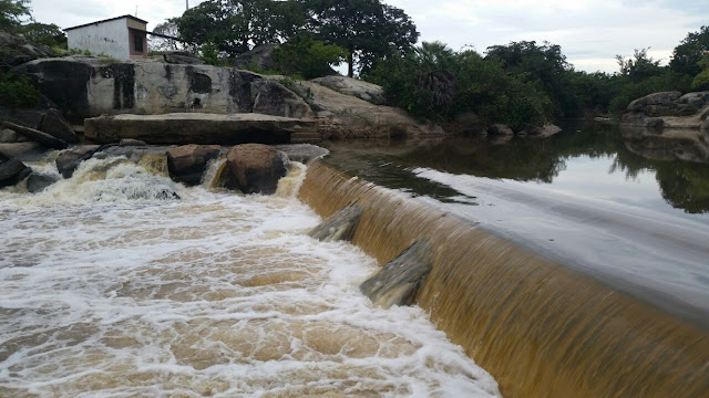 Há alguns meses as água nem chegavam a passar por cima da Barragem. Depois de muitas de muitas chuva e da sangria do Açude Itaúna, que deságua no leito do Rio Timonha, o local se transformou.